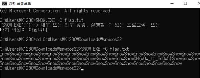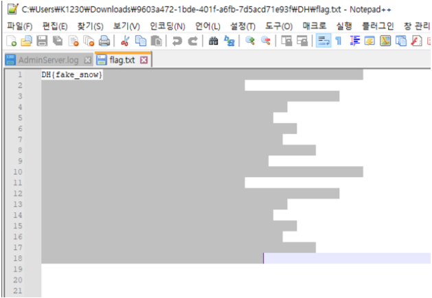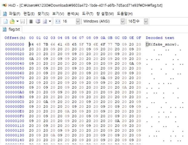 - flag.txt에서 DH{fake_snow}뒤에 공백으로 된 부분이 존재함
